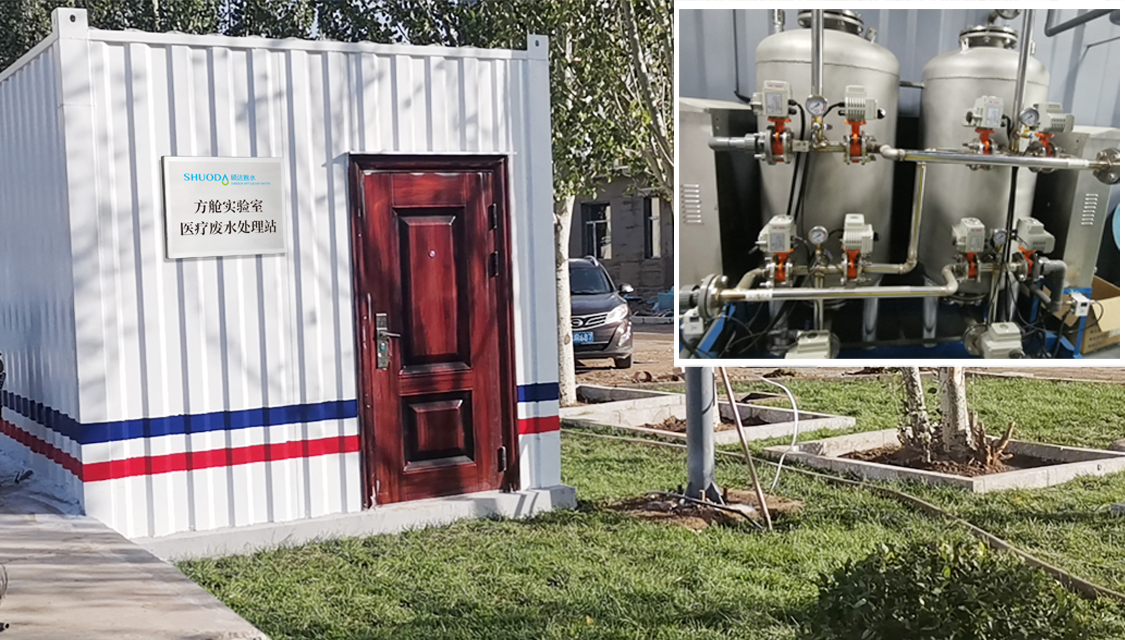 呼和浩特市民兵訓(xùn)練基地防疫防護(hù)教學(xué)區(qū)方艙實(shí)驗(yàn)室醫(yī)療廢水處理項(xiàng)目,設(shè)計(jì)處理量50m3/d。碩達(dá)智水作為該項(xiàng)目承建單位,圍繞“一站式”一體化處理設(shè)計(jì)理念,應(yīng)用針對(duì)病原微生物的一體化處理設(shè)備,占地面積小、處理效果好,且運(yùn)行成本低。